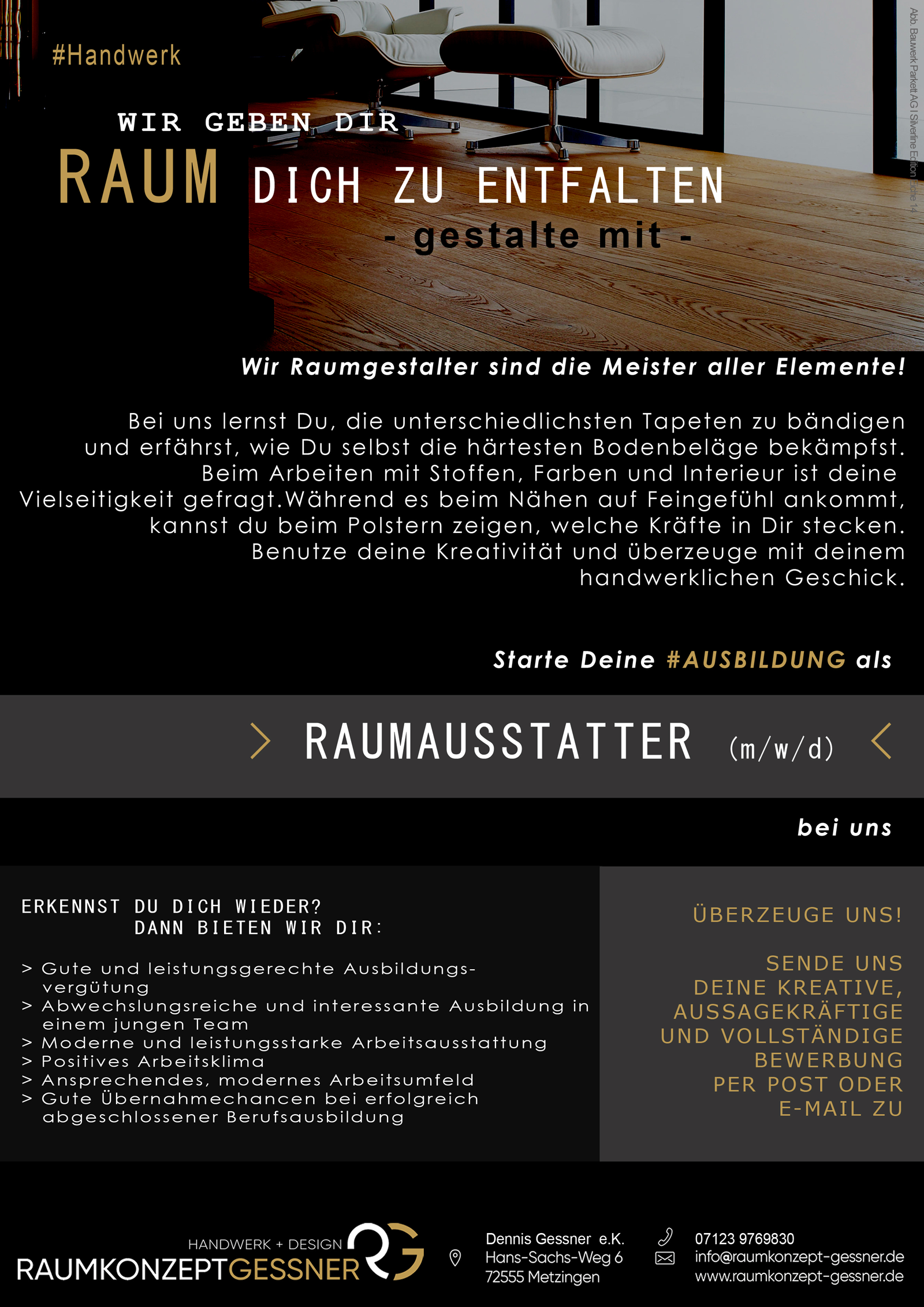Du hast Lust einen Beruf zu erlernen, in dem Kreativität, Handwerkliches Geschick und der Blick fürs Detail wichtig sind, aber auch mal die Hände schmutzig werden dürfen. Dann bist du bei uns richtig.
